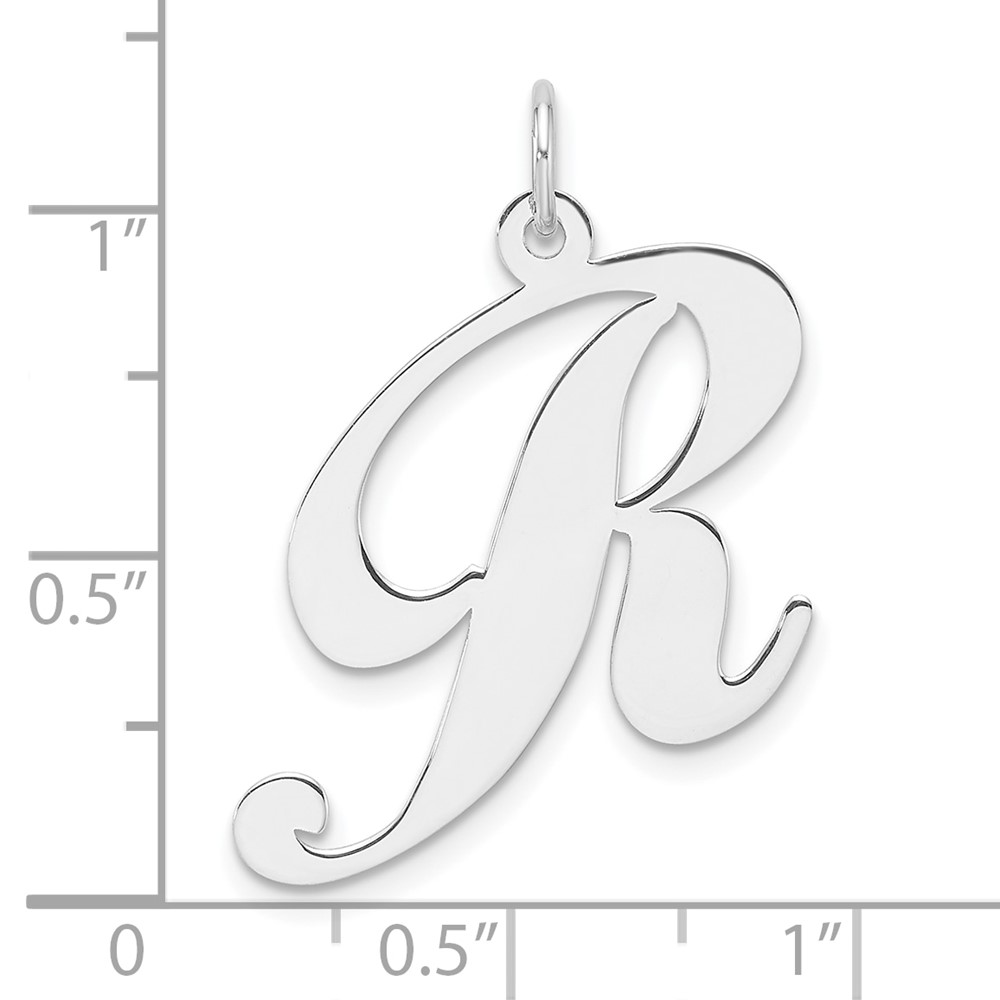 Large Sterling Silver Rhodium-plated Fancy Script Letter R Initial Charm