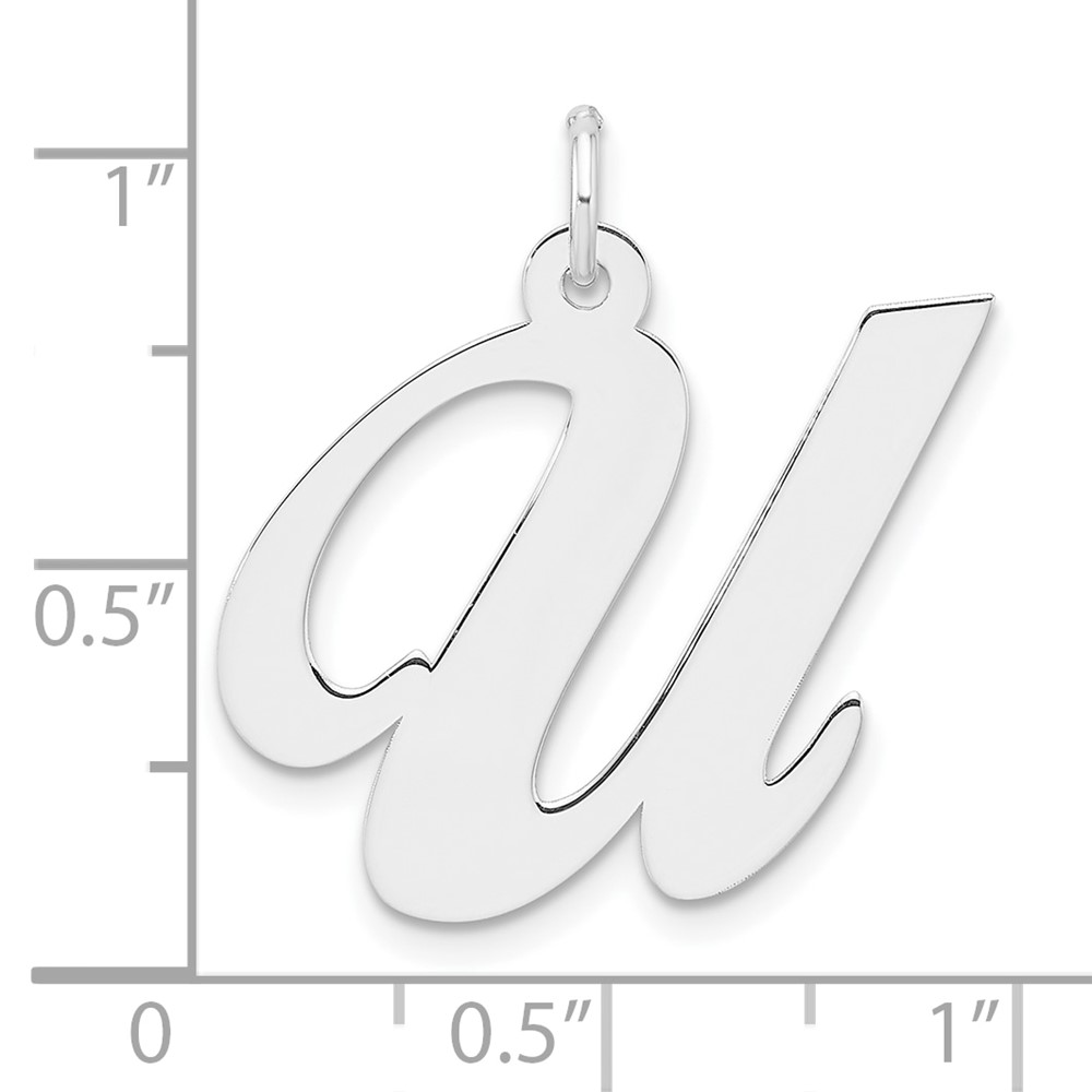 Large Sterling Silver Rhodium-plated Fancy Script Letter U Initial Charm