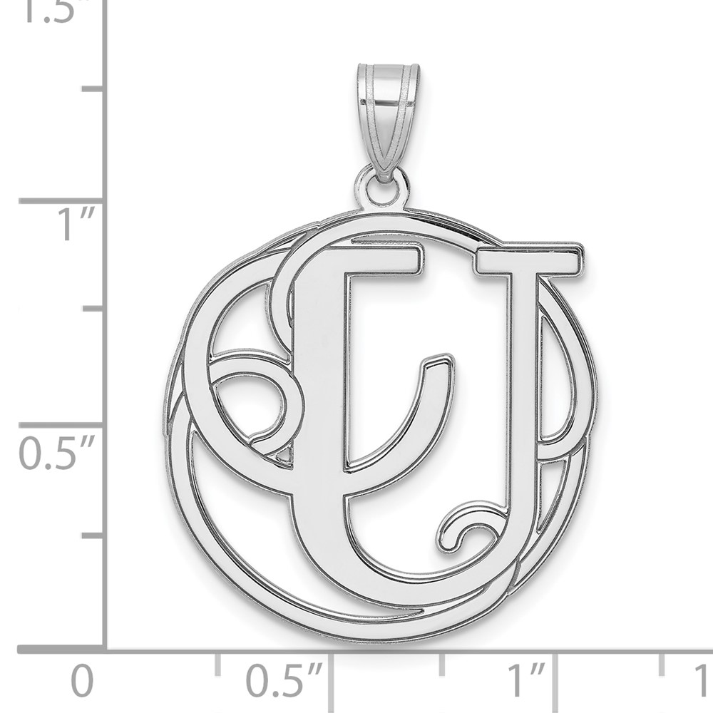 Large Sterling Silver Rhodium-plated Fancy Script Letter U Initial Pendant
