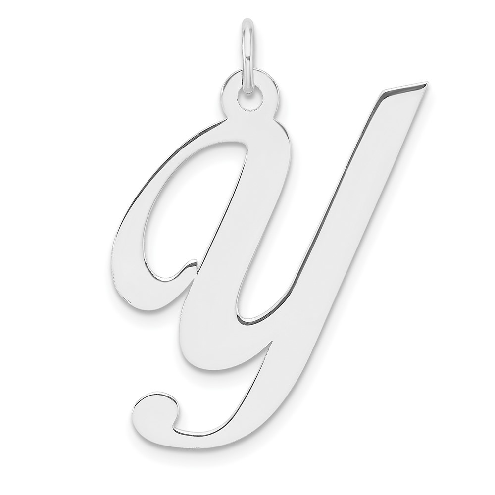 Large Sterling Silver Rhodium-plated Fancy Script Letter Y Initial Charm