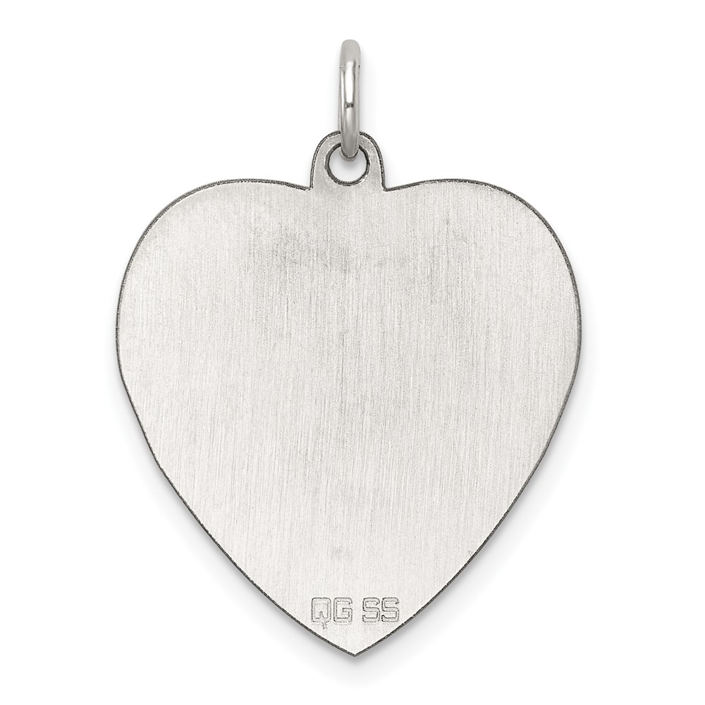 SS Rh-plt Engraveable Heart Polished Front/Satin Back Disc Charm
