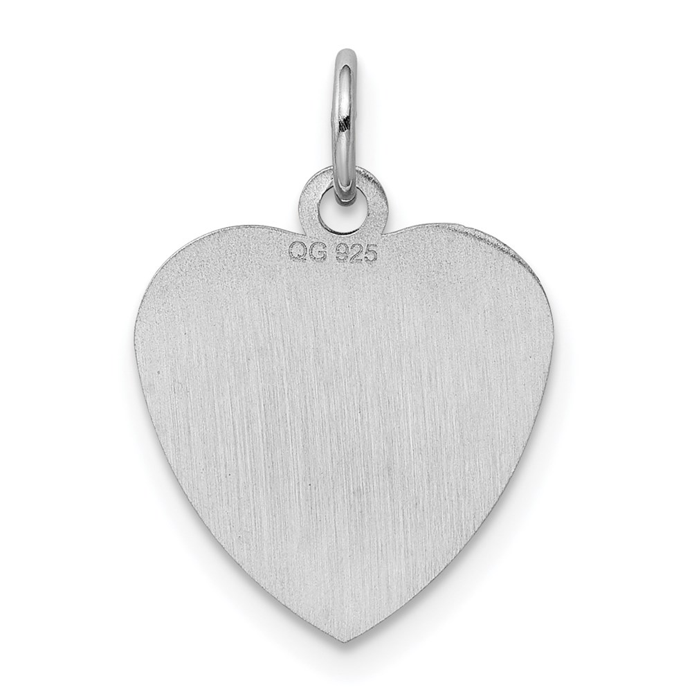 SS Rh-plt Engraveable Heart Polished Front/Satin Back Disc Charm