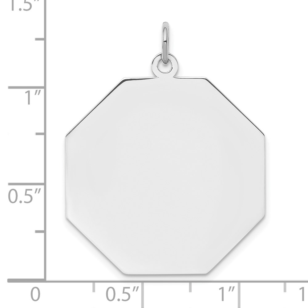 SS Rh-plt Engraveable Octagon Polished Front/Satin Back Disc Charm