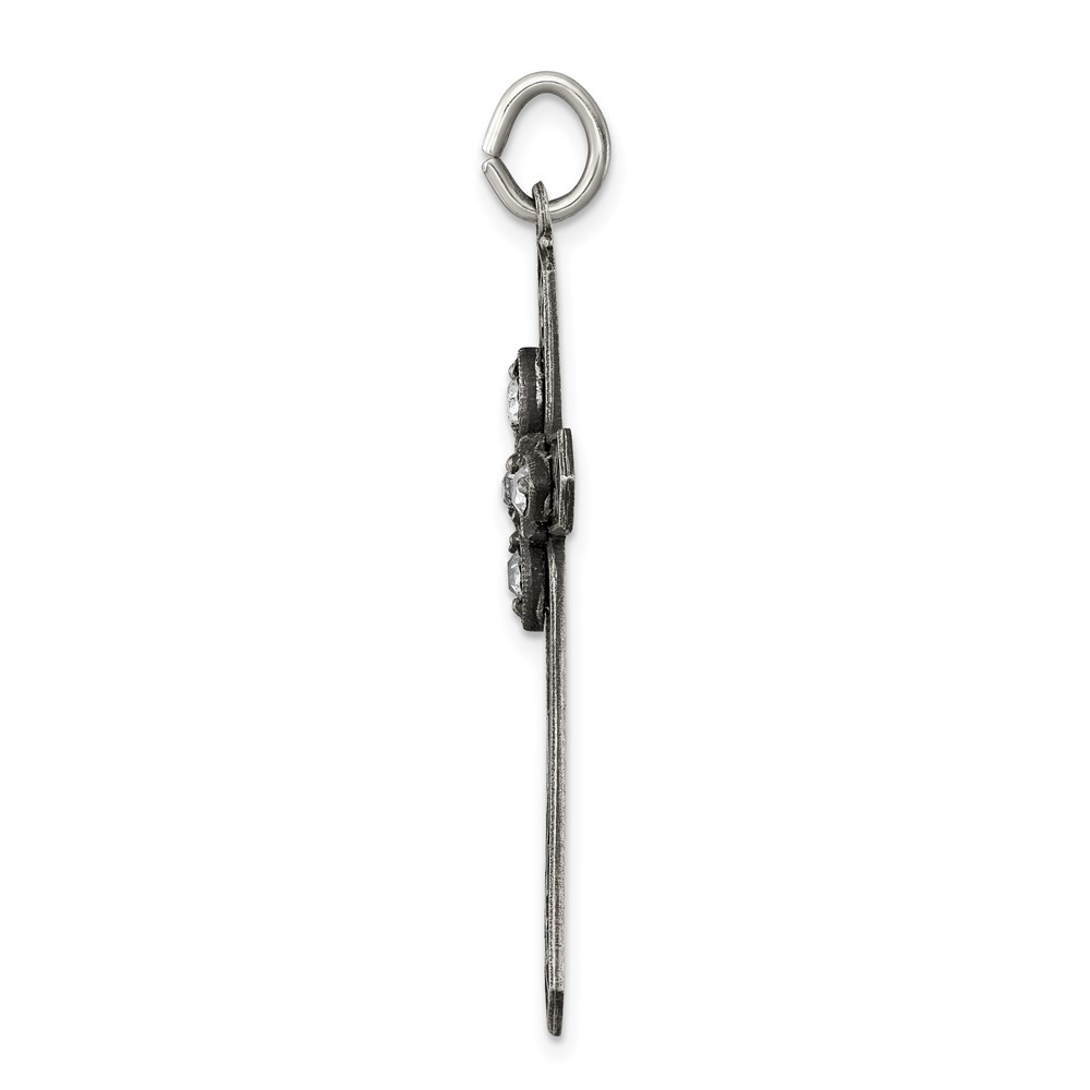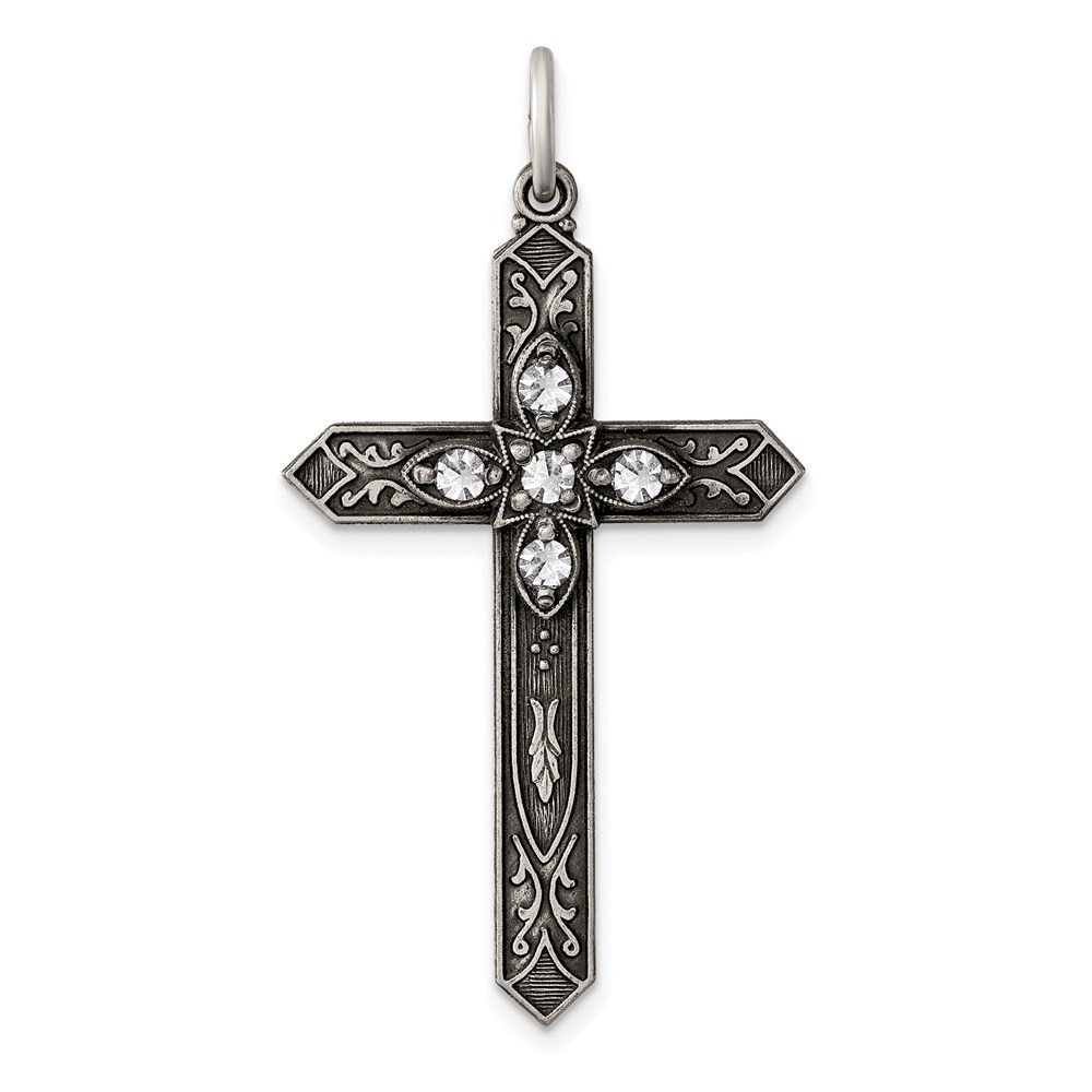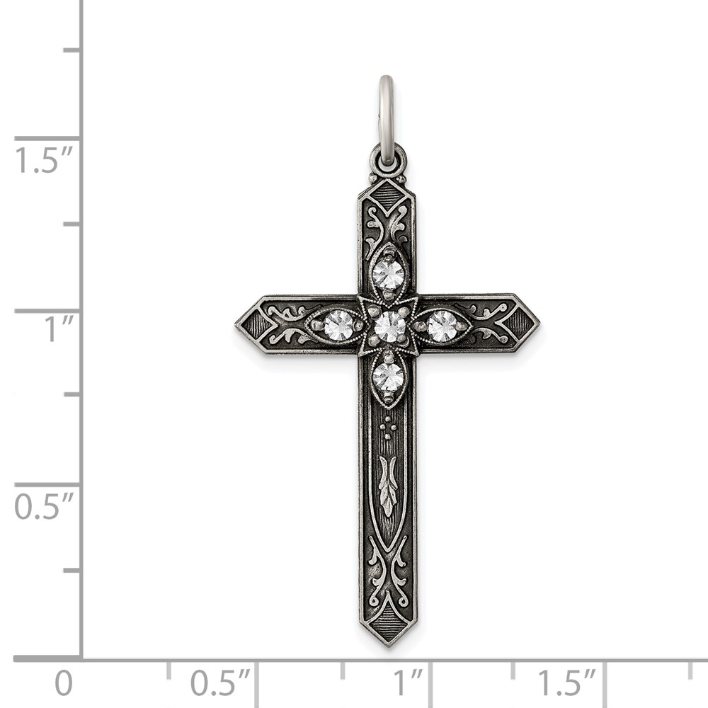 Sterling Silver Antiqued April Glass Birthstone Cross Pendant