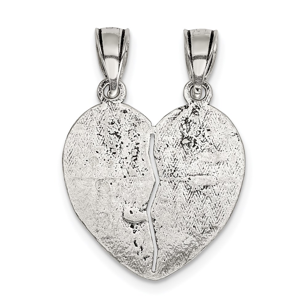 Sterling Silver Antiqued Best Friends Break Apart Heart Pendant