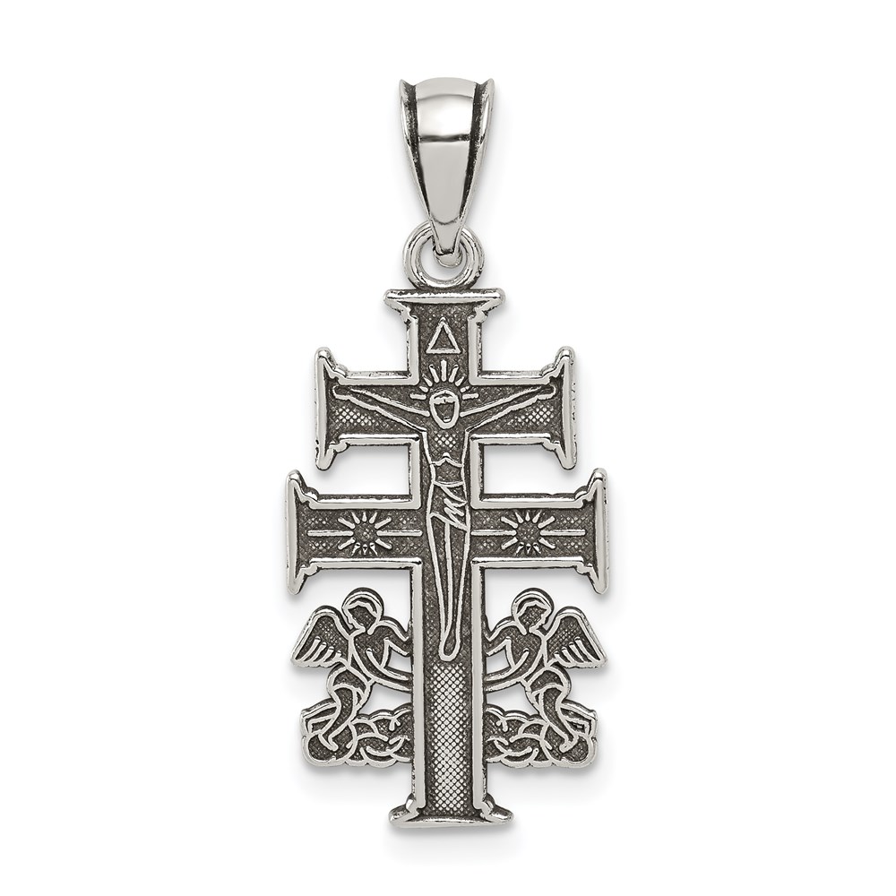 Sterling Silver Antiqued Caravaca Double Cross w/Angels Crucifix Pendant