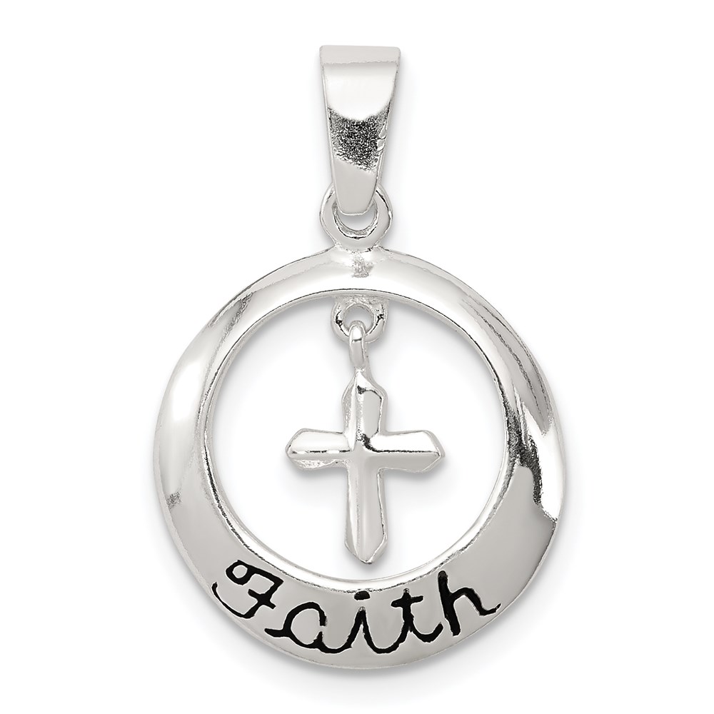 Sterling Silver Antiqued Faith w/Cross Pendant