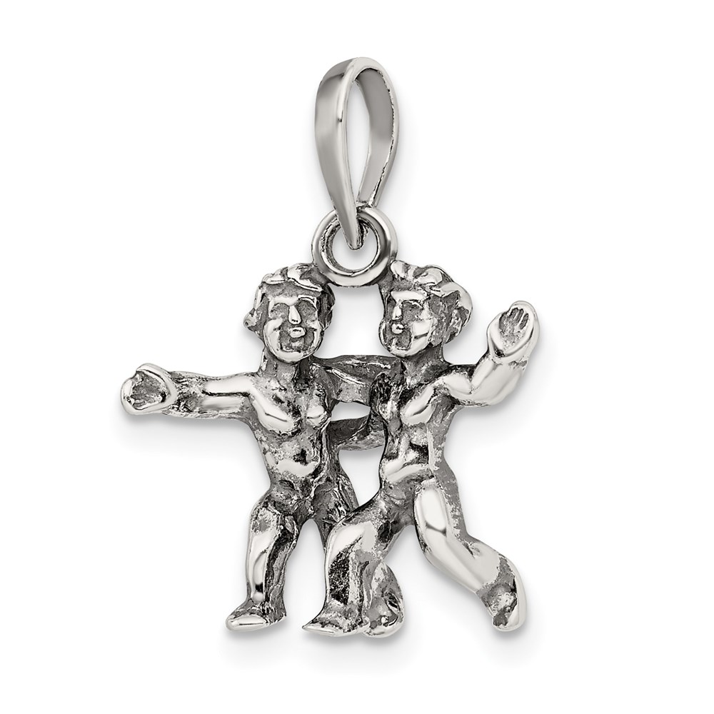 Sterling Silver Antiqued Gemini Zodiac Pendant
