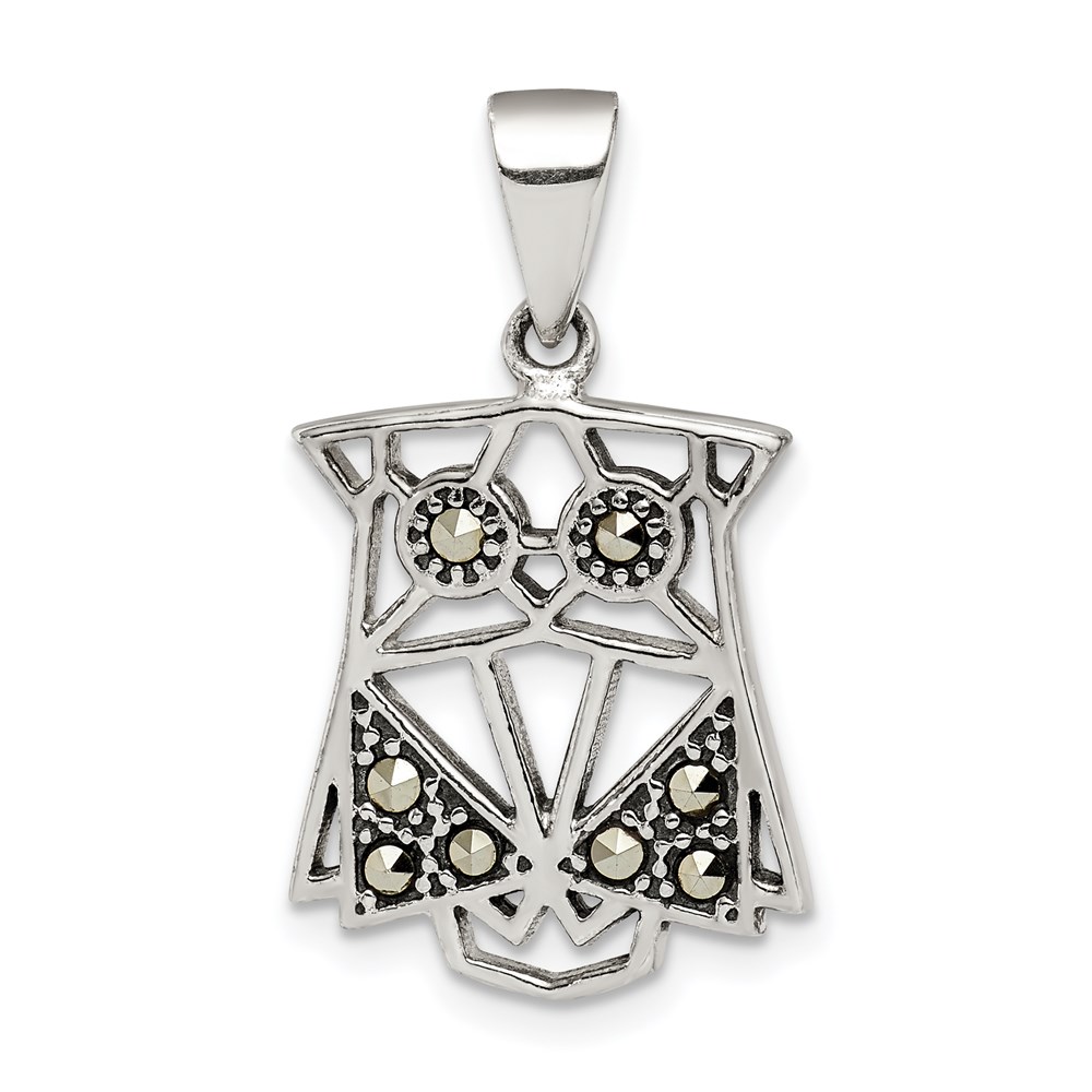 Sterling Silver Antiqued Marcasite Owl Pendant