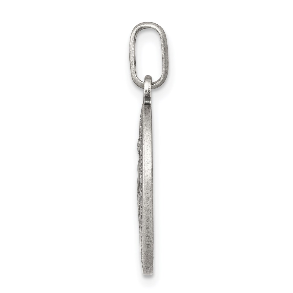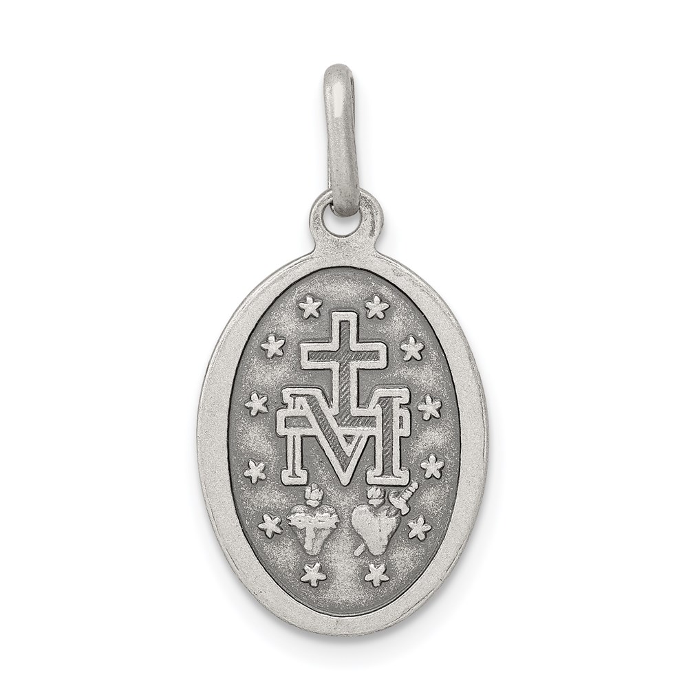 14k White Gold Polished and Satin Solid Miraculous Medal Round Pendant