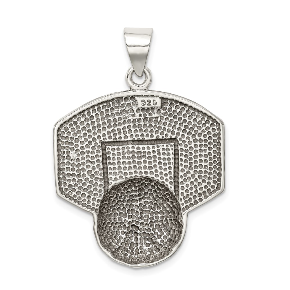 Sterling Silver Antiqued & Textured Basketball with Backboard Pendant