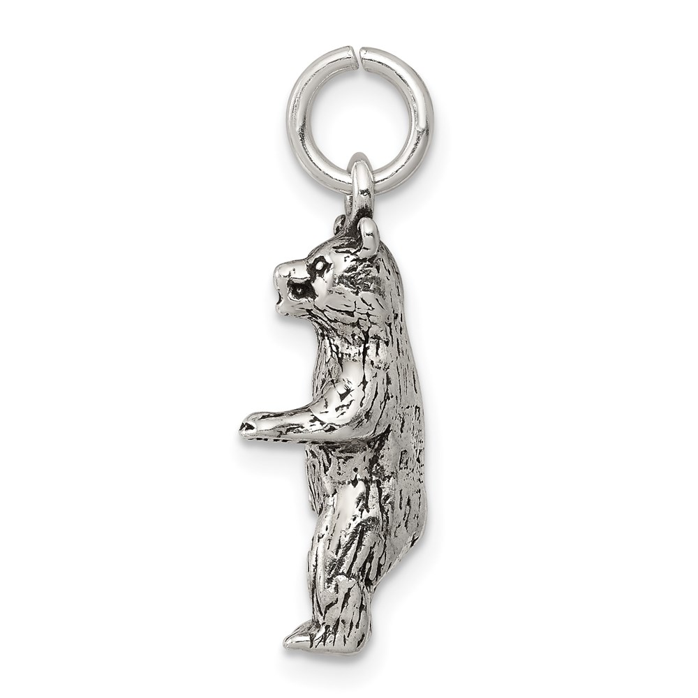Sterling Silver Antiqued & Textured Bear Standing up Pendant