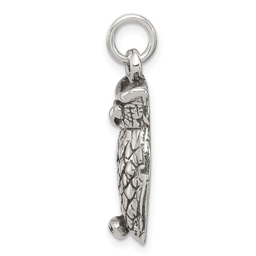 Sterling Silver Antiqued & Textured Perched Owl Pendant
