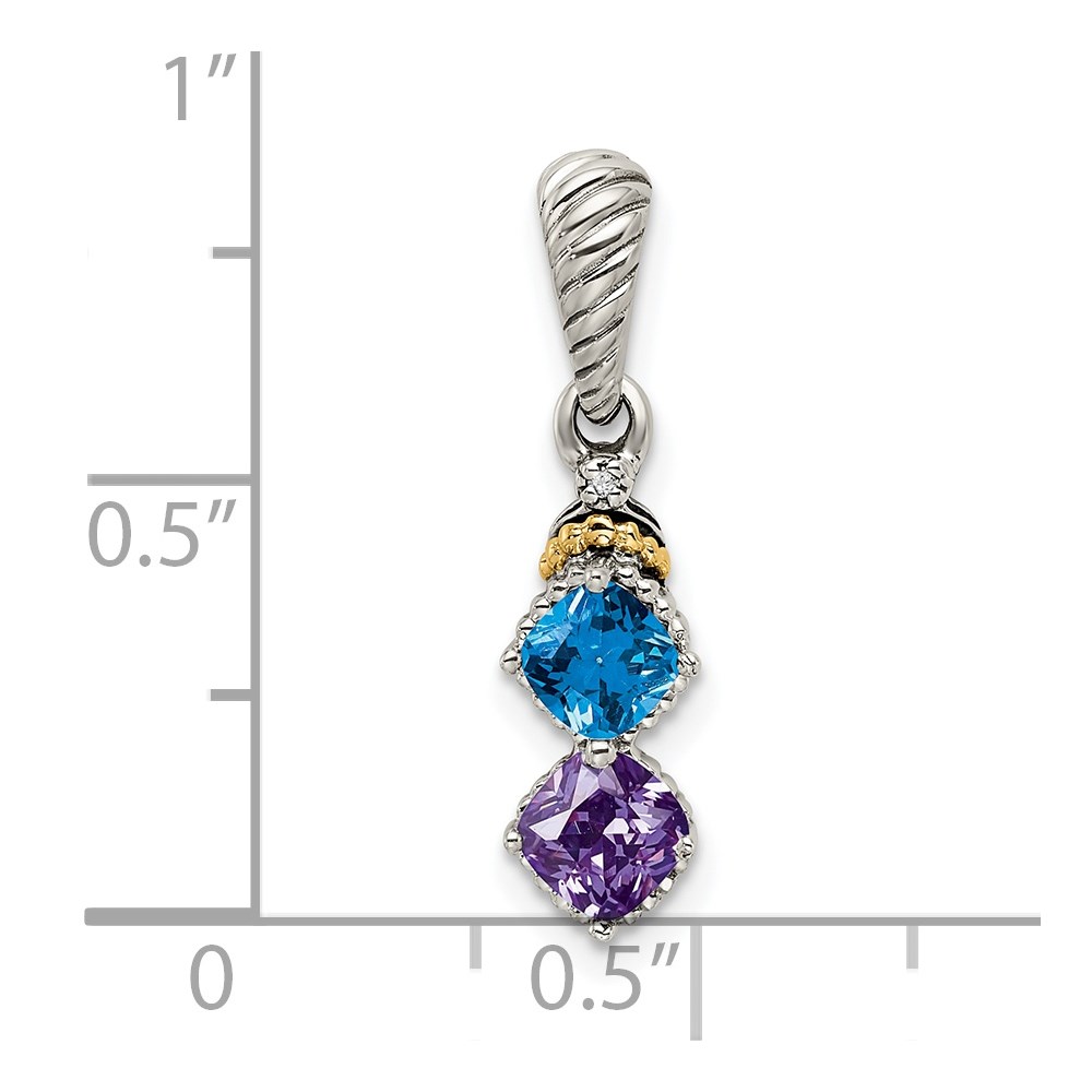 Sterling Silver Antiqued w/14k 2-stone w/Diamond Mothers Pendant Semi-Mount