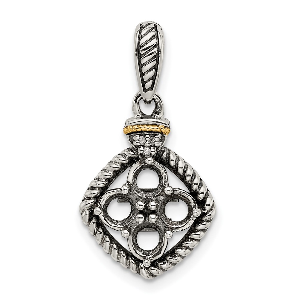 Sterling Silver Antiqued w/14k 4-stone w/Diamond Mothers Pendant Semi-Mount