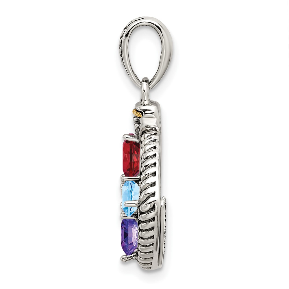 Sterling Silver Antiqued w/14k 5-stone w/Diamond Mothers Pendant Semi-Mount