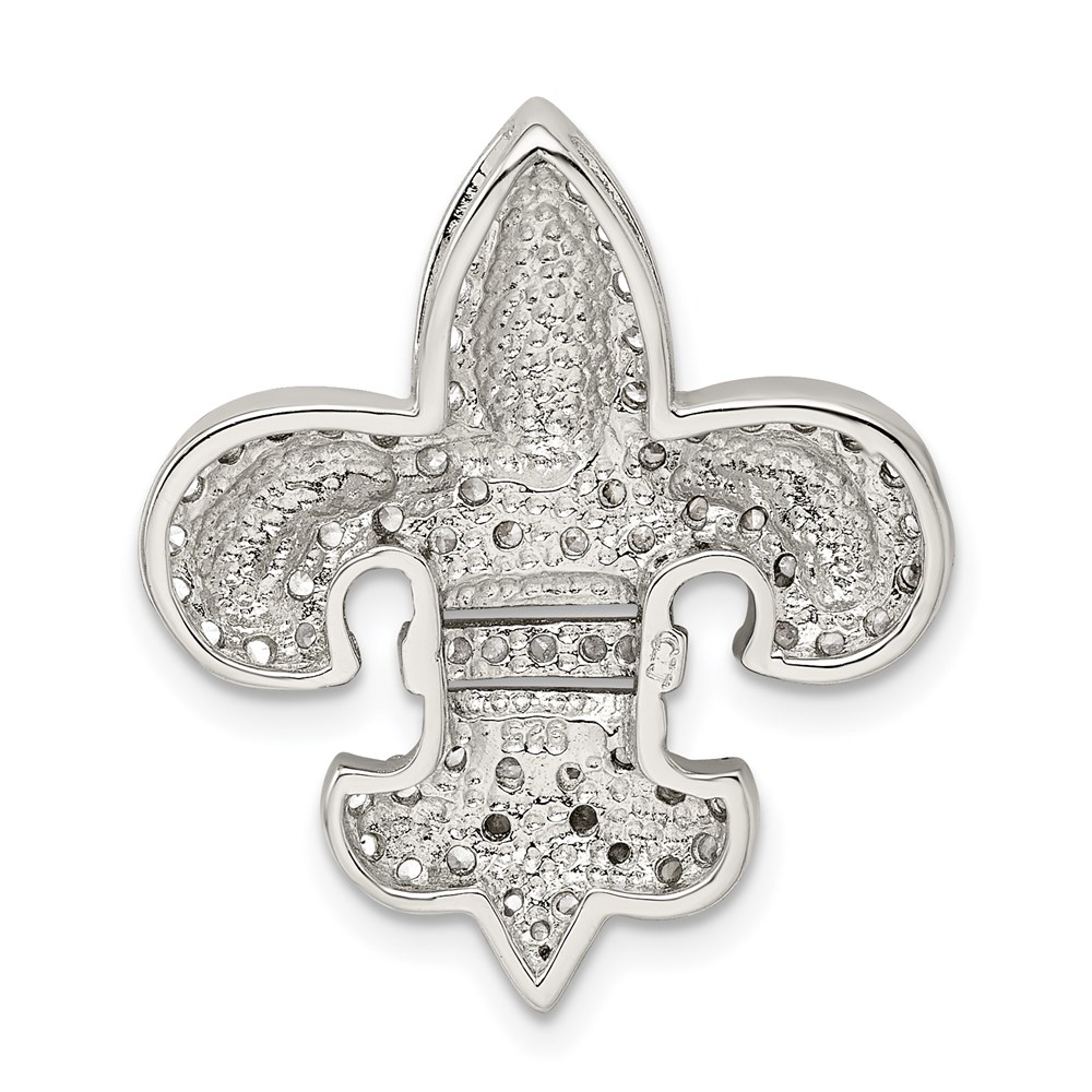 Sterling Silver CZ Fleur de Lis w/ Flash Gold-Plated Chain Slide Pendant