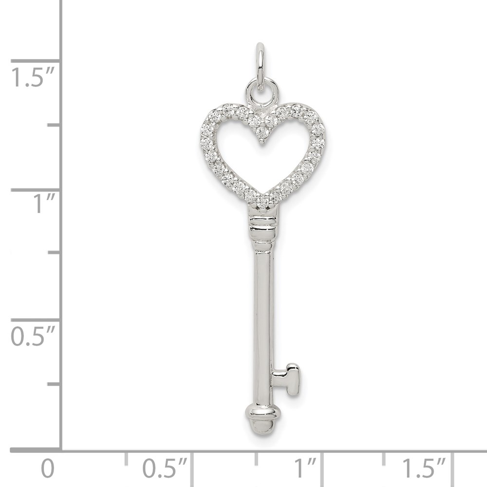 Sterling Silver Rhod-plated CZ Love Key Pendant