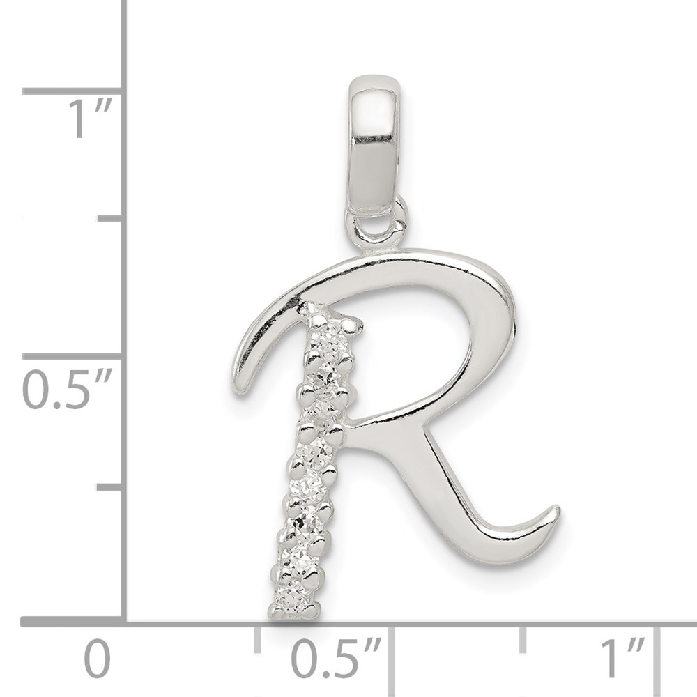 Sterling Silver CZ Letter R Initial Pendant