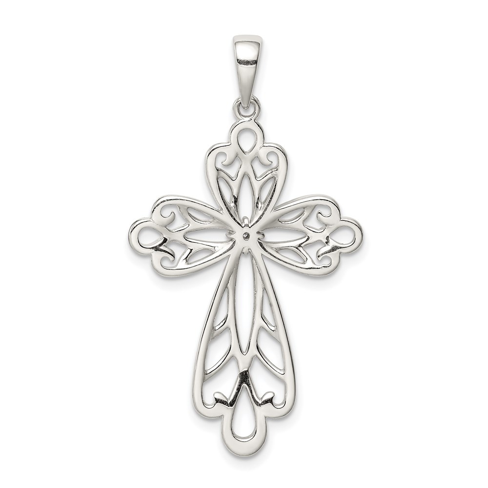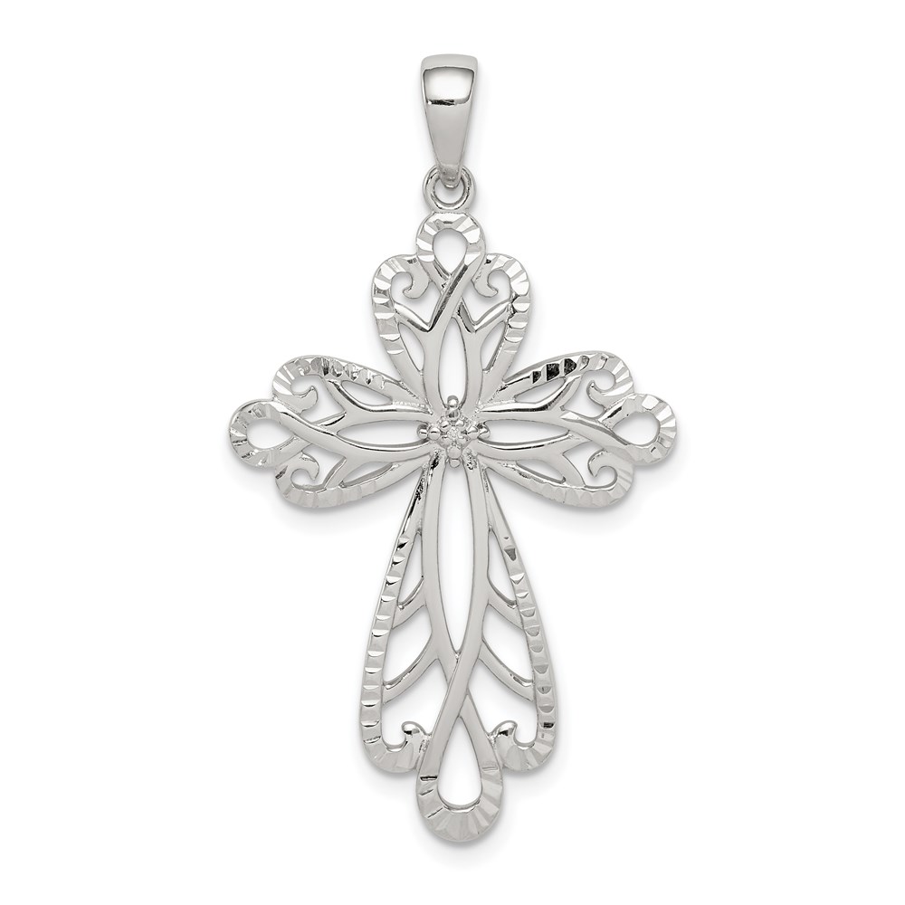 Sterling Silver Diamond & Diamond-cut Cross Pendant