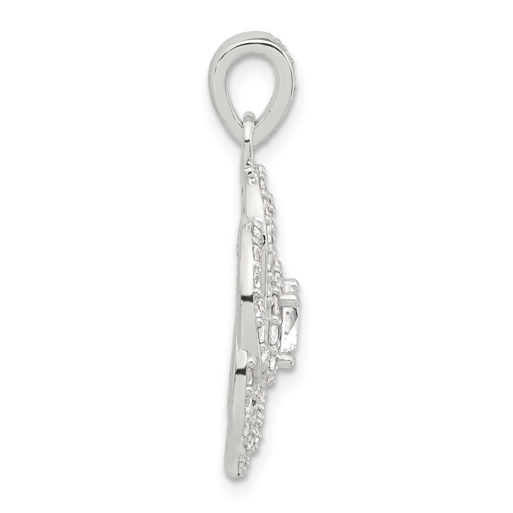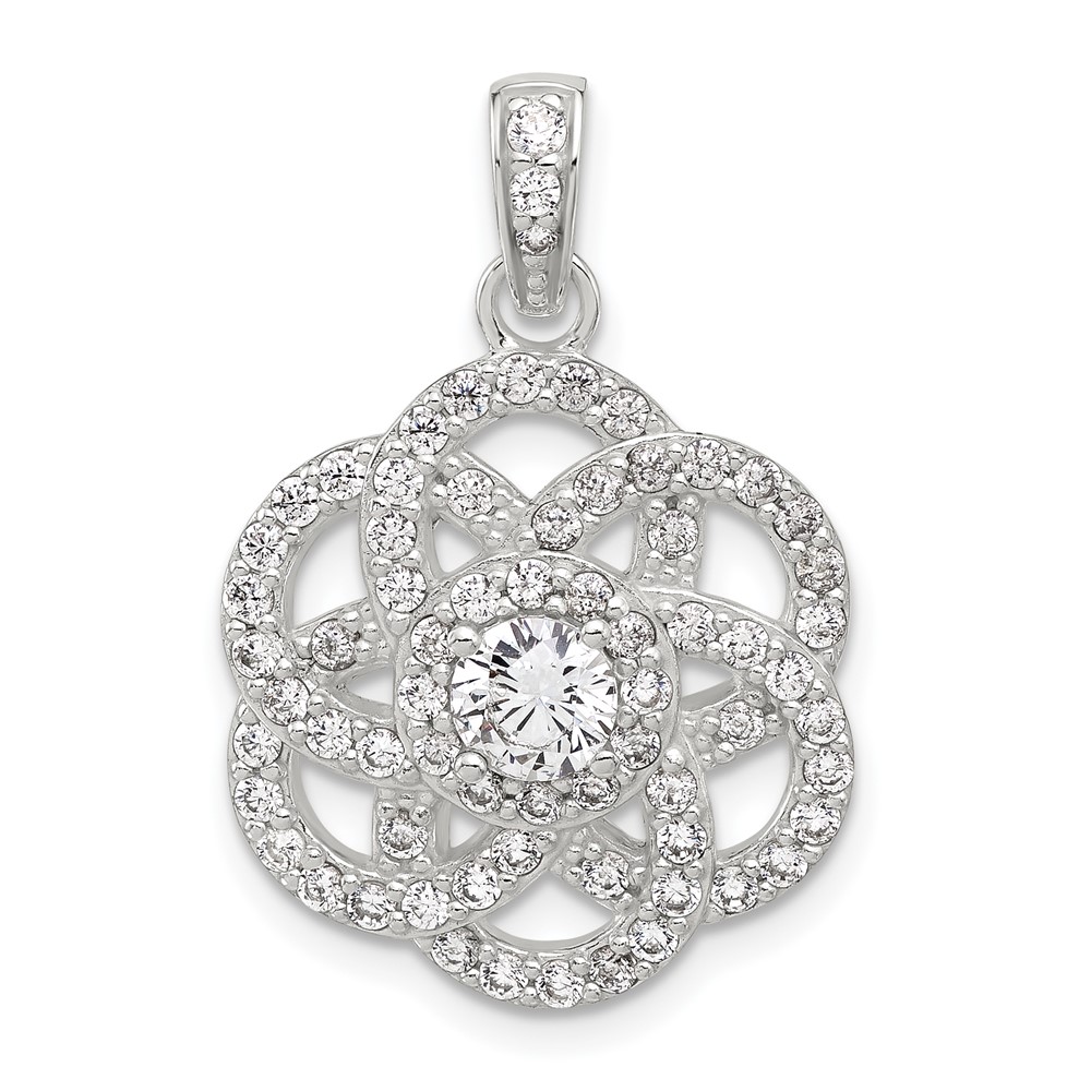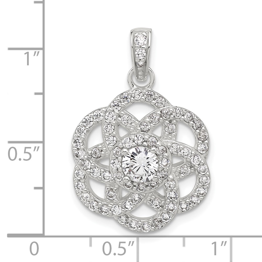 Sterling Silver E-coated CZ Flower Pendant