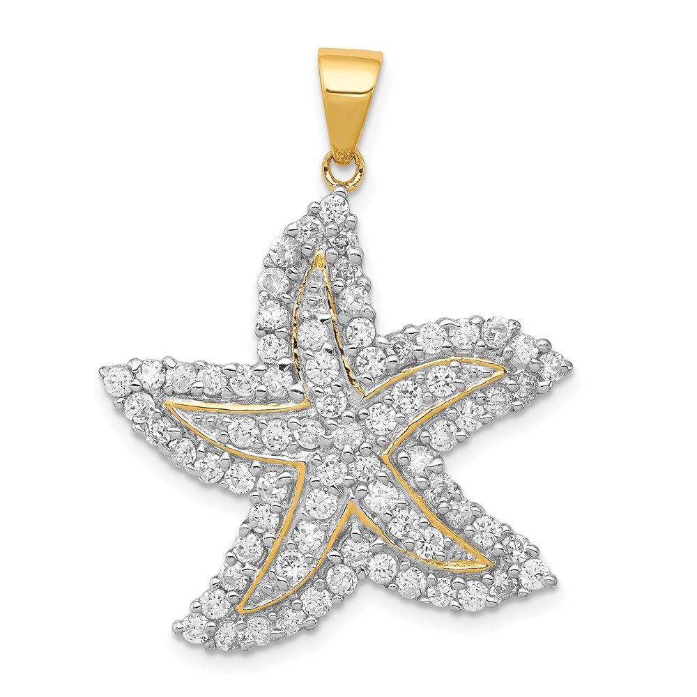 Sterling Silver Flash Gold-Plated and CZ Starfish Pendant