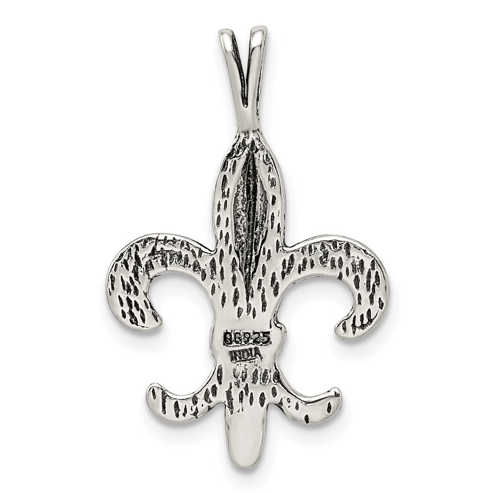 Sterling Silver Rhodium-platedCZ Fleur de Lis Pendant