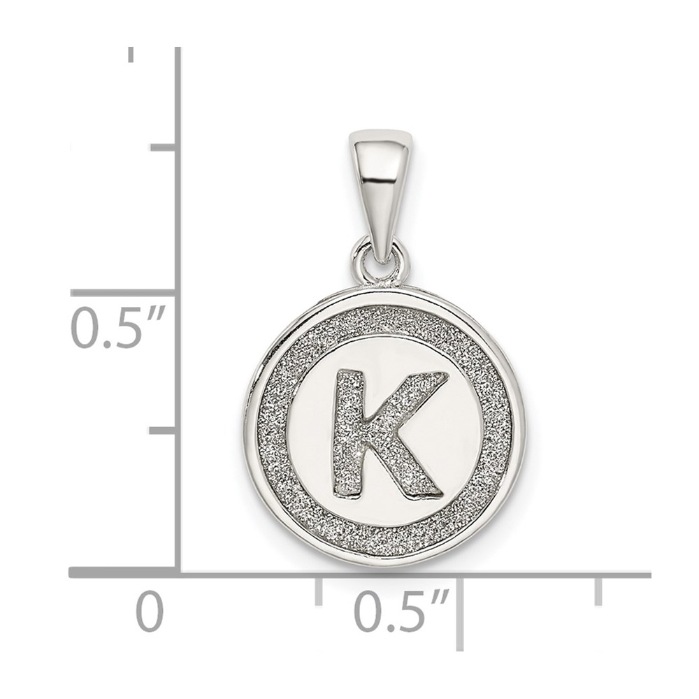 Sterling Silver Glitter Enamel Letter K Initial Circle Pendant