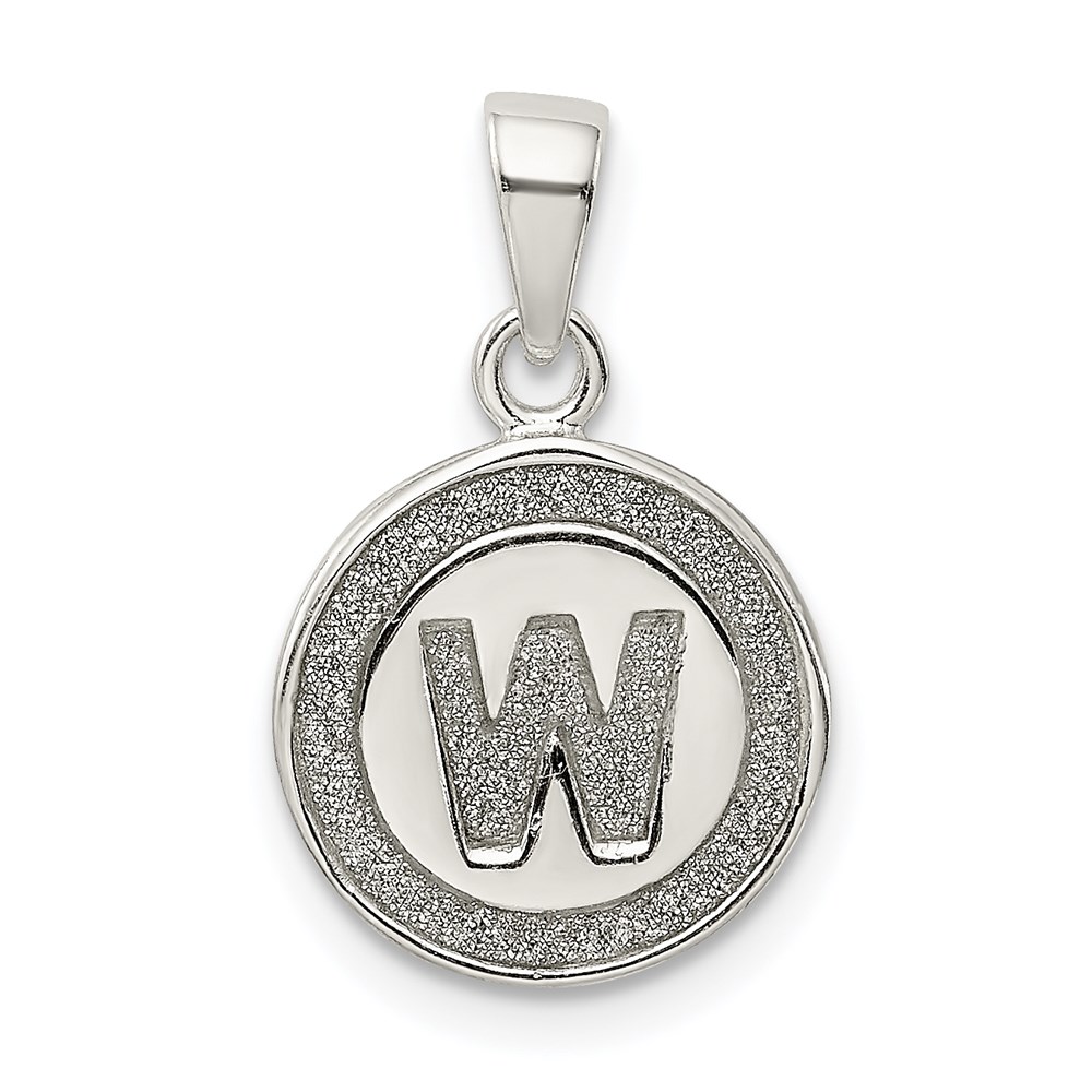 Sterling Silver Glitter Enamel Letter W Initial Circle Pendant