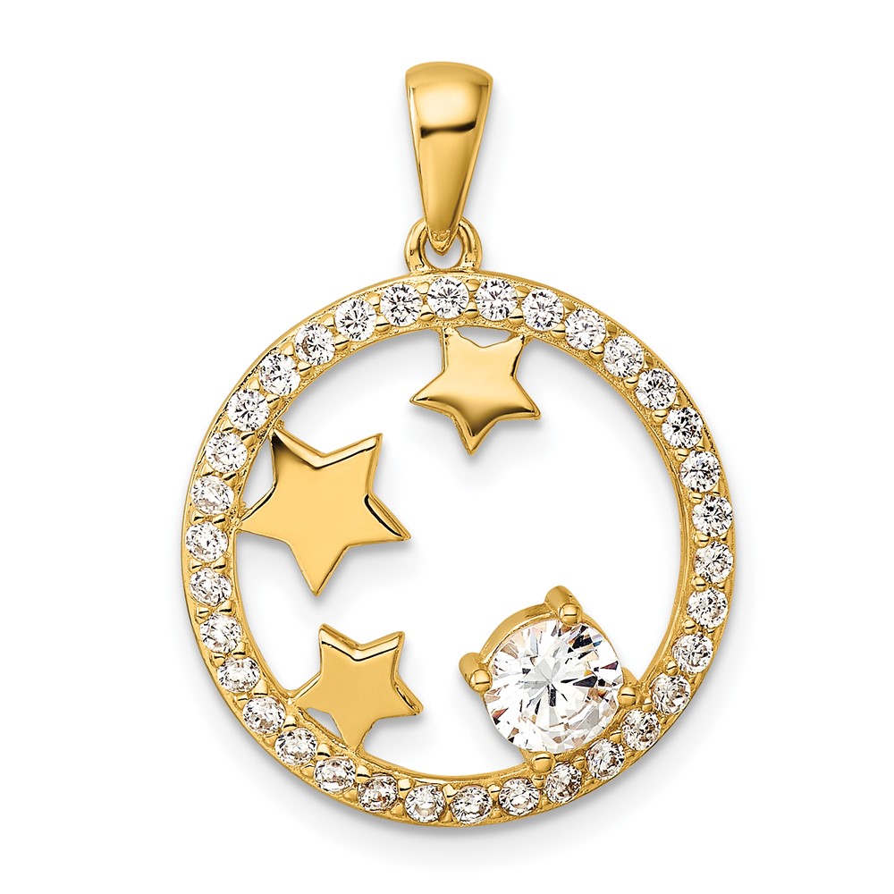 Sterling Silver Gold-plated CZ Stars Circle Pendant
