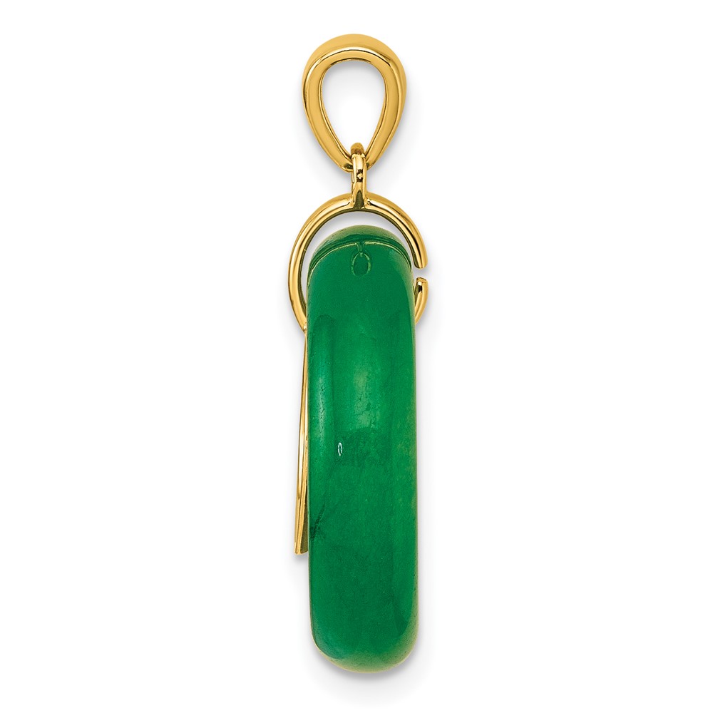 Sterling Silver Gold-tone Polished Good Luck Dangle Green Chalcedony Circle Pendant