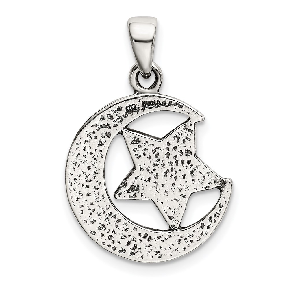 Sterling Silver LOVE YOU TO THE MOON Antiqued Star and Moon Pendant