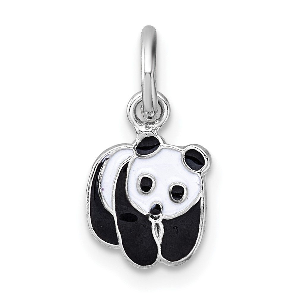 Sterling Silver Madi K Rhodium-plated Enameled Black And White Panda Childrens Pendant