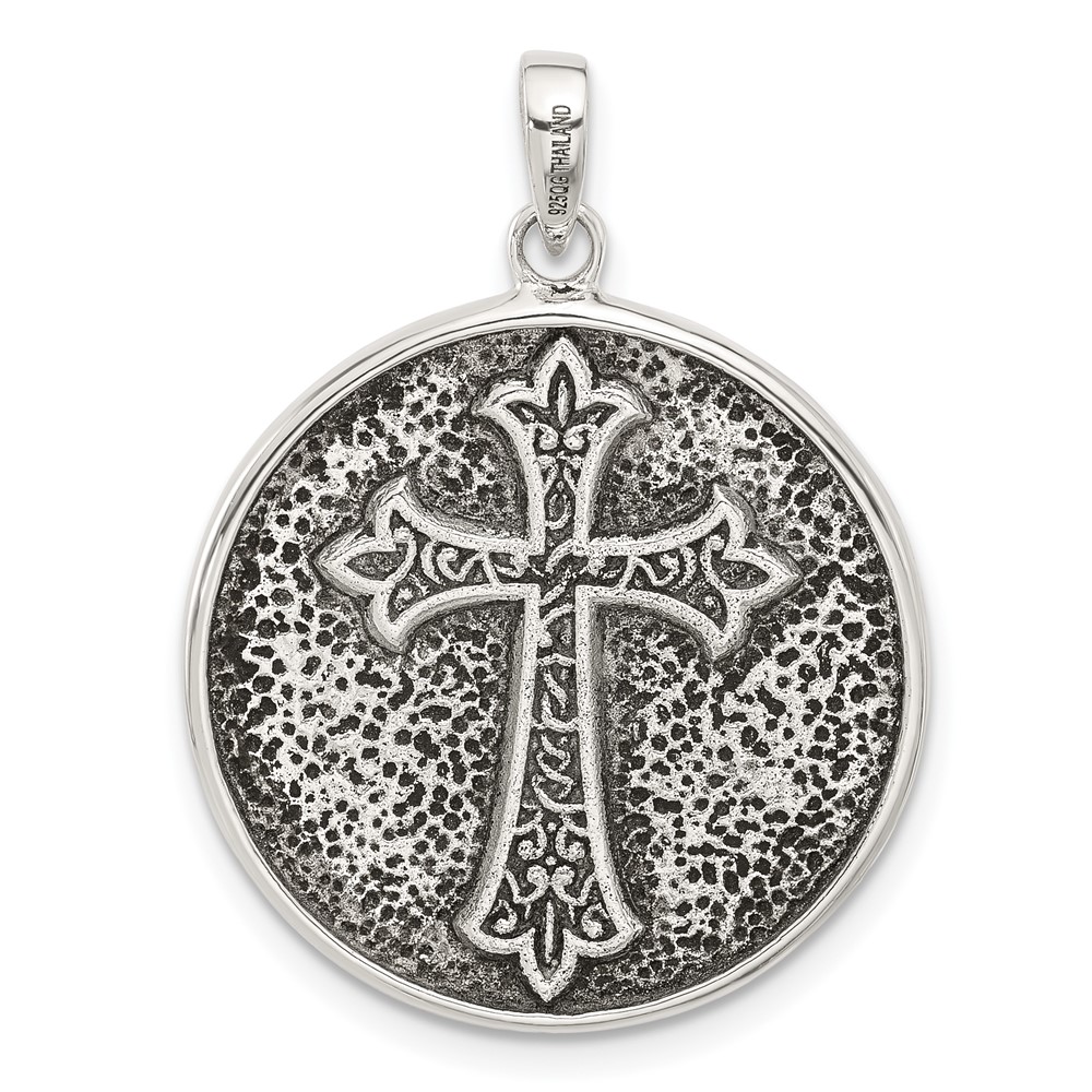 Sterling Silver Oxidized Sacred Heart of Jesus Reversible Medal Pendant