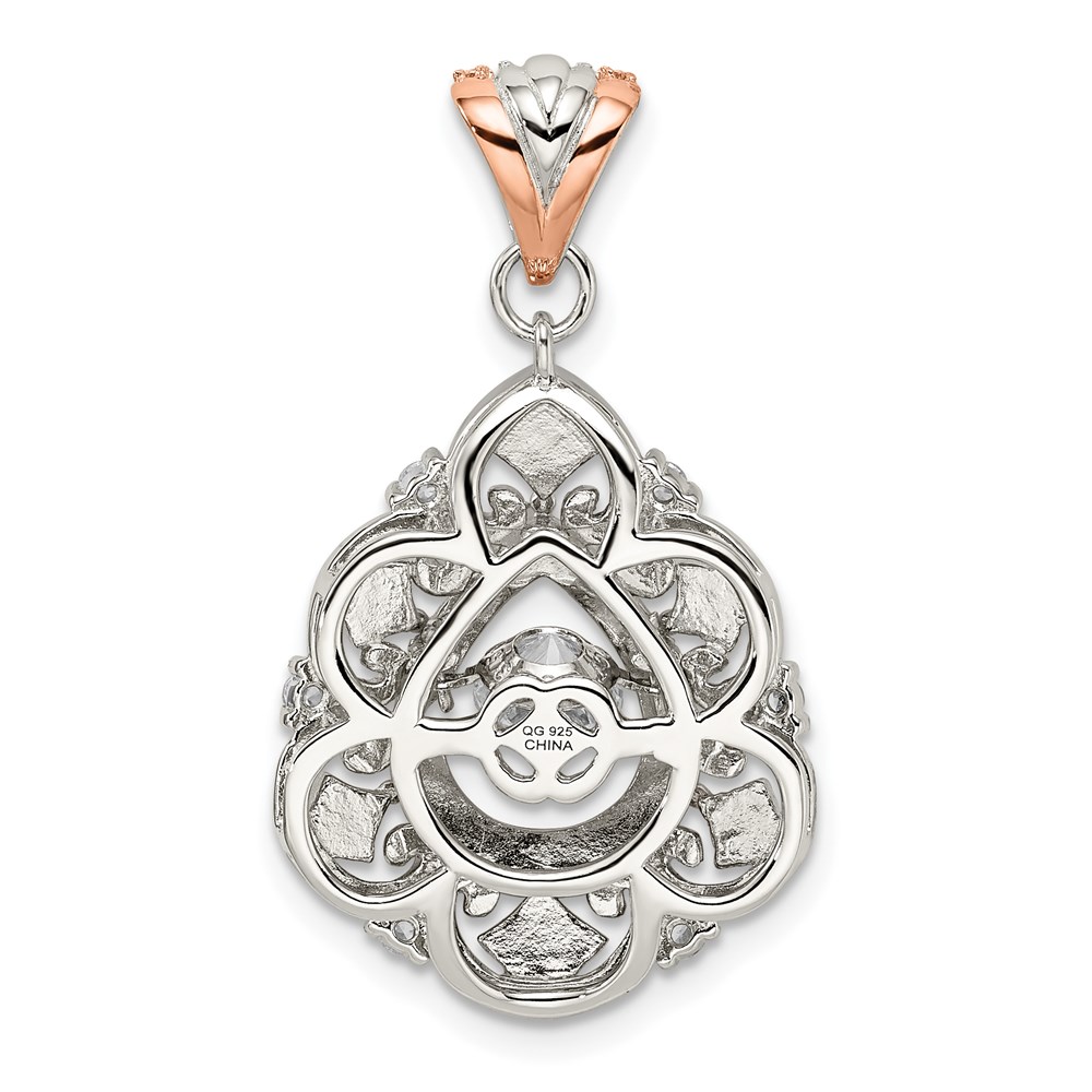 Sterling Silver Plat-plate Rose-tone Vibrant CZ Fancy Penda