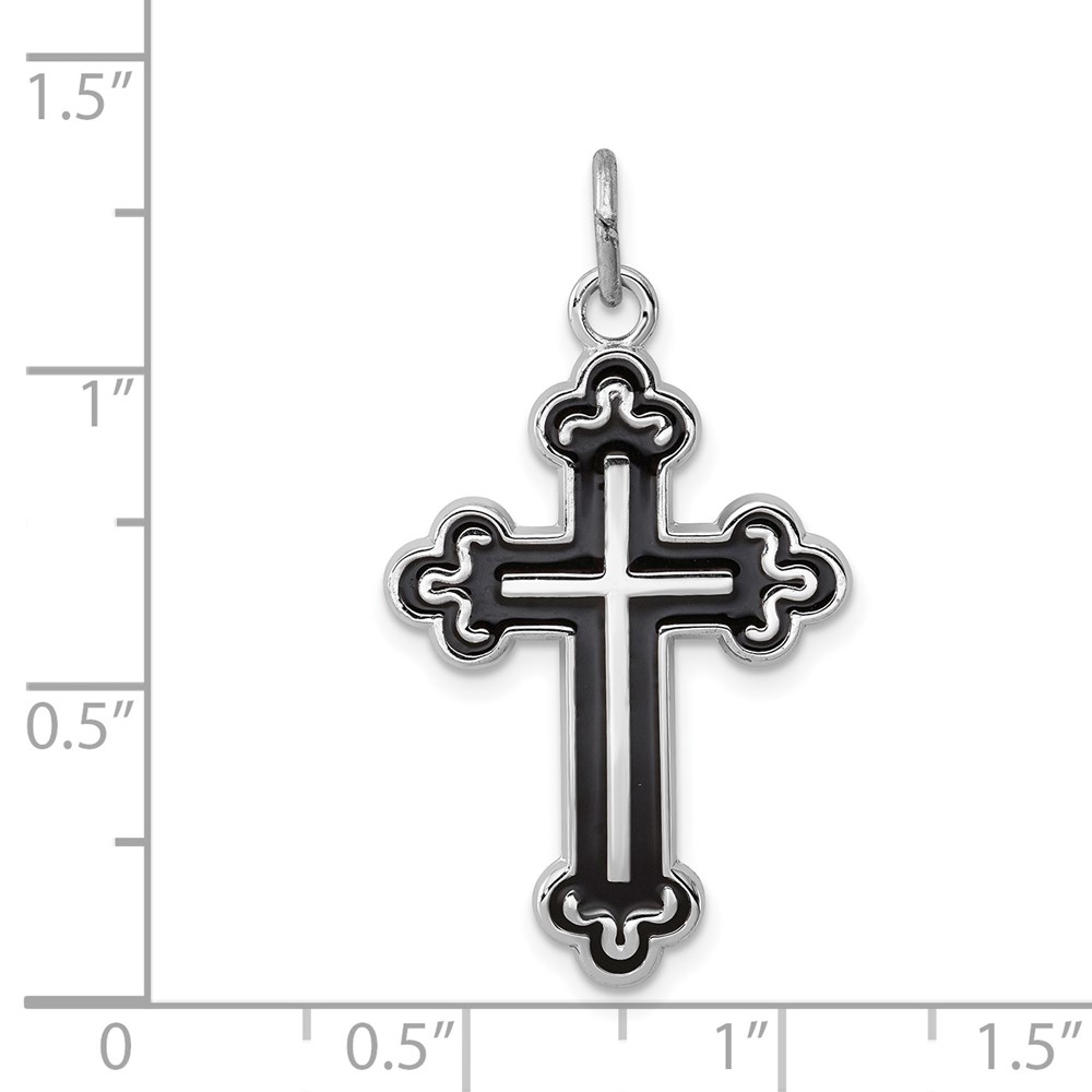 Sterling Silver Platinum-plated Enameled Cross Pendant