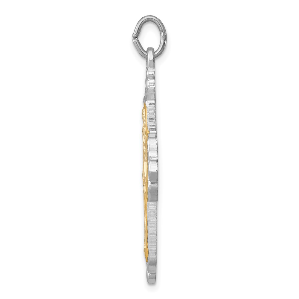 Sterling Silver Platinum-plated & Gold-tone 4-Way Medal Cross Pendant