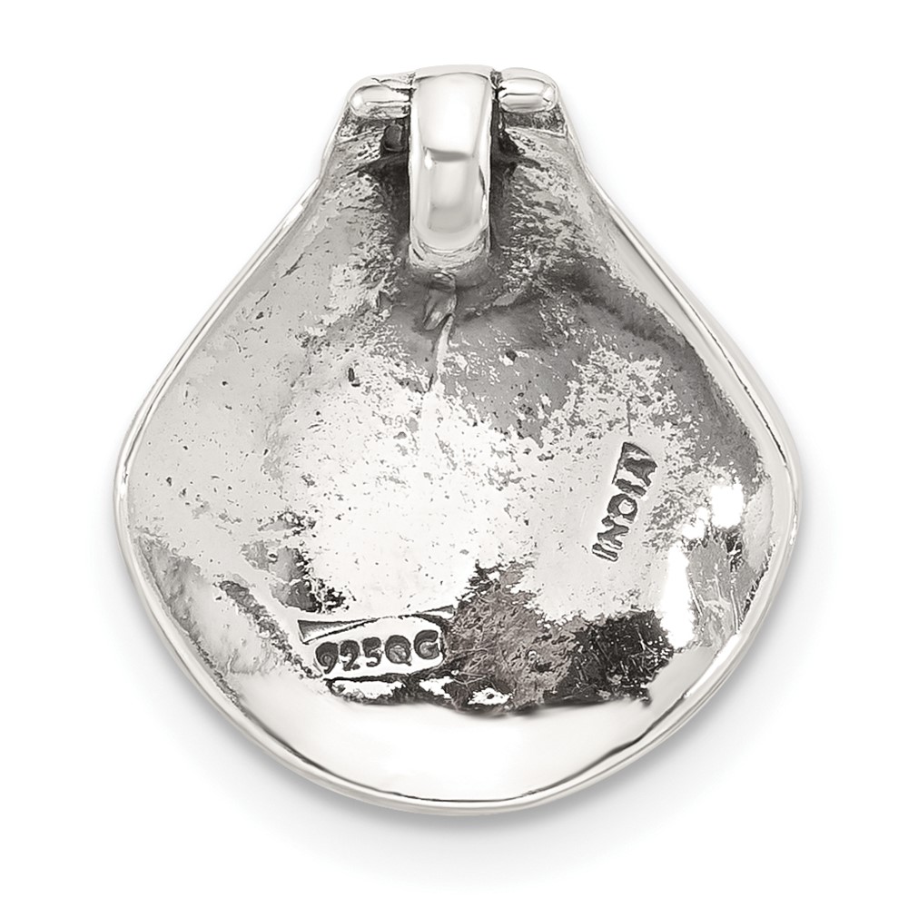 Sterling Silver Polished and Antiqued Synthetic Pearl Seashell Chain Slide