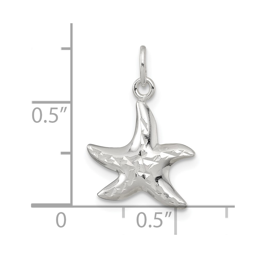 Sterling Silver Polished and Diamond-cut 3-D Starfish Charm