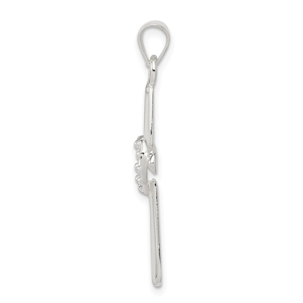 Sterling Silver Polished and Textured Cross w/ Heart Pendant
