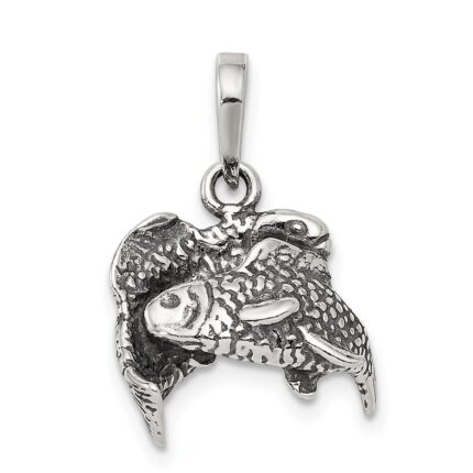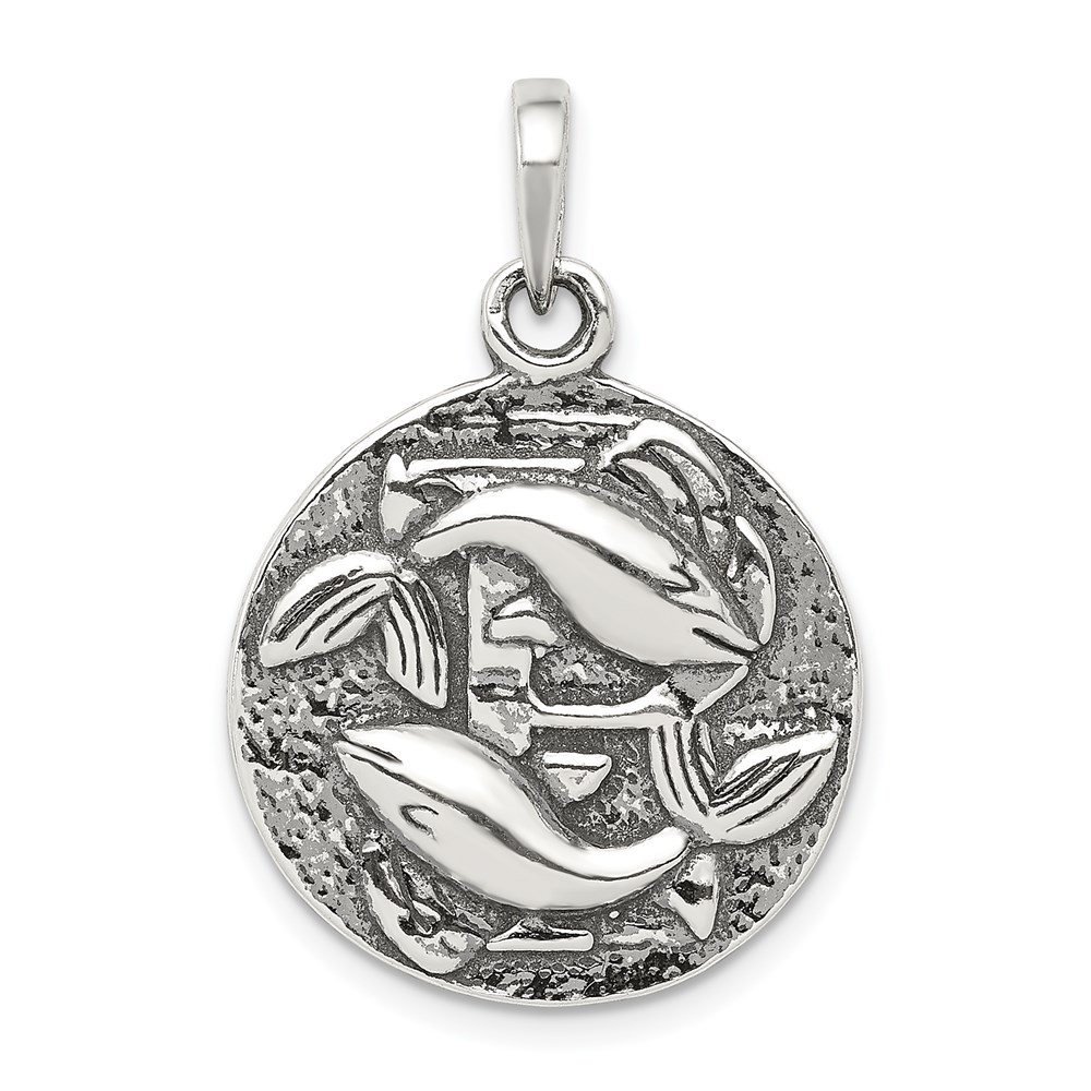 Sterling Silver Polished Antique Finish Pisces Horoscope Zodiac Pendant