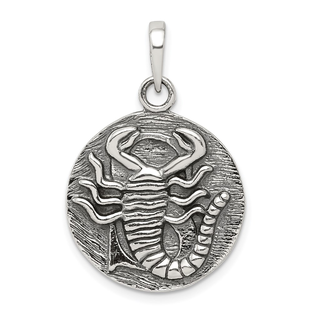 Sterling Silver Polished Antique Finish Scorpio Horoscope Zodiac Pendant