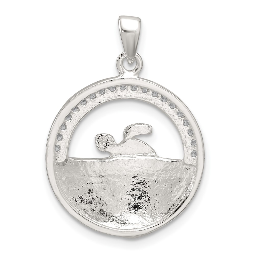 Sterling Silver Polished Blue Enamel and CZ Sea Turtle Circle Pendant