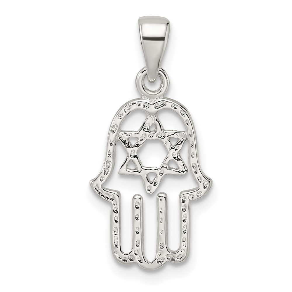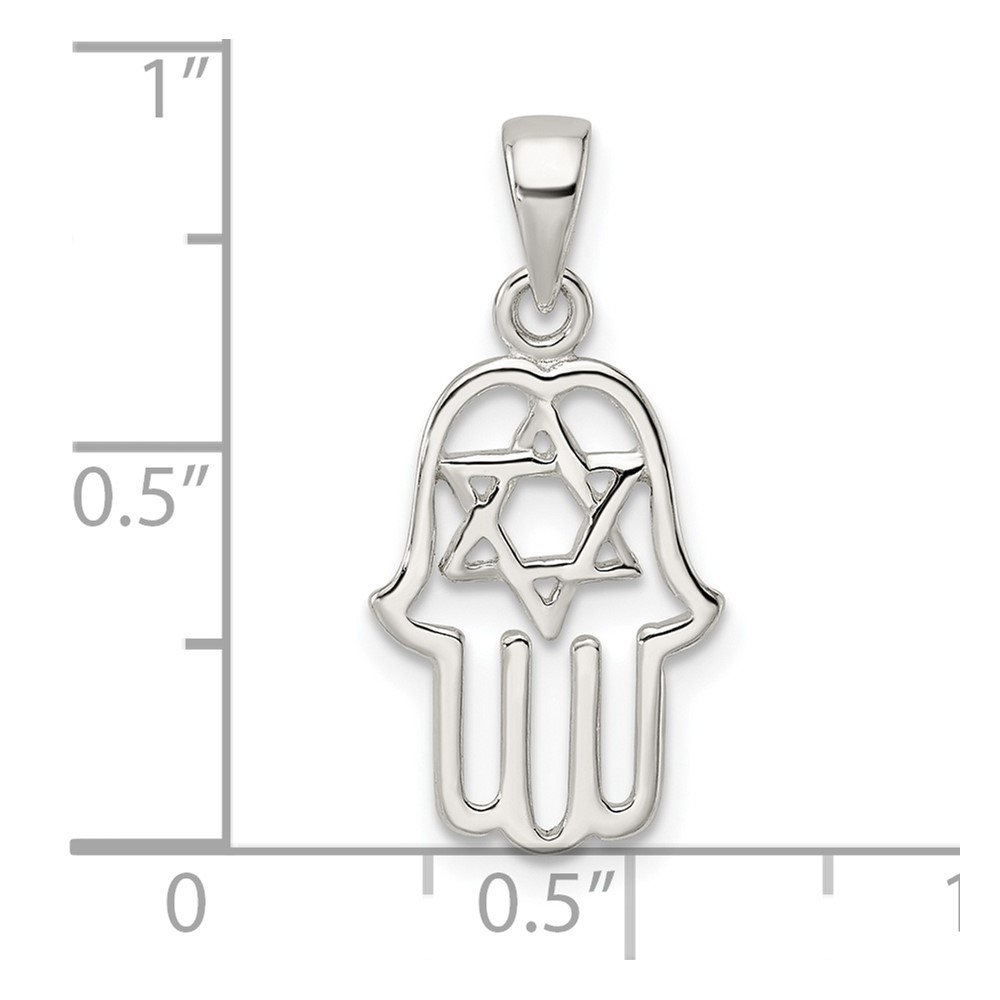 Sterling Silver Polished Chamseh w/Star of David Pendant