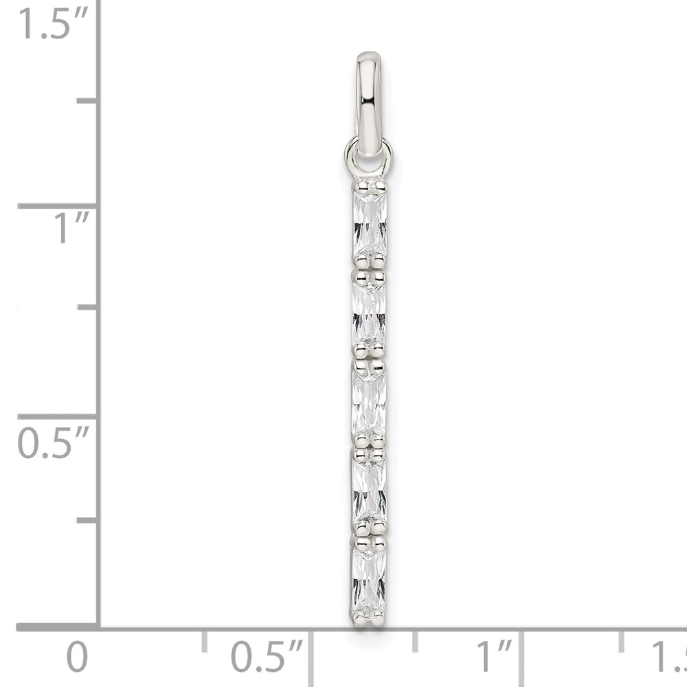 Sterling Silver Polished CZ Bar Pendant