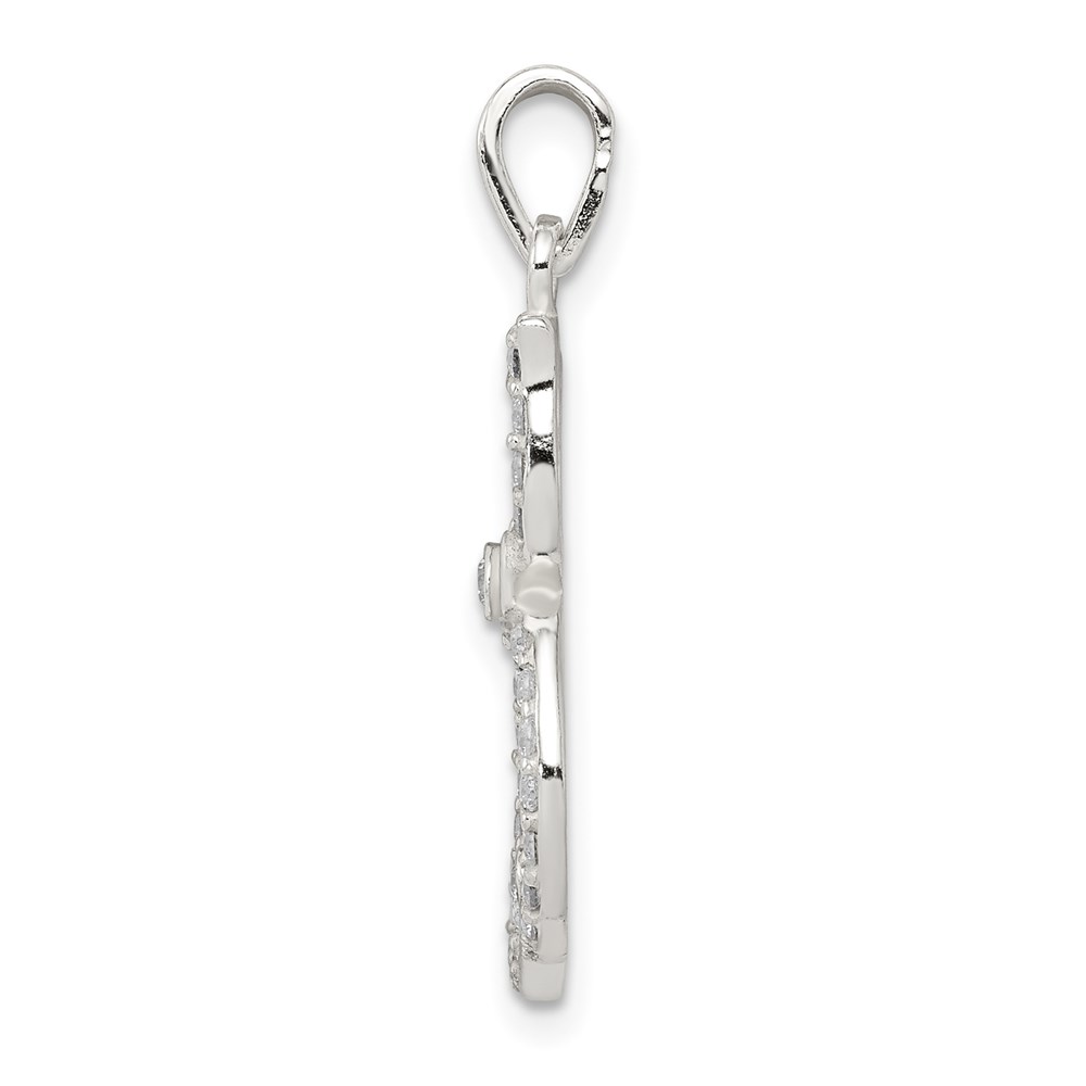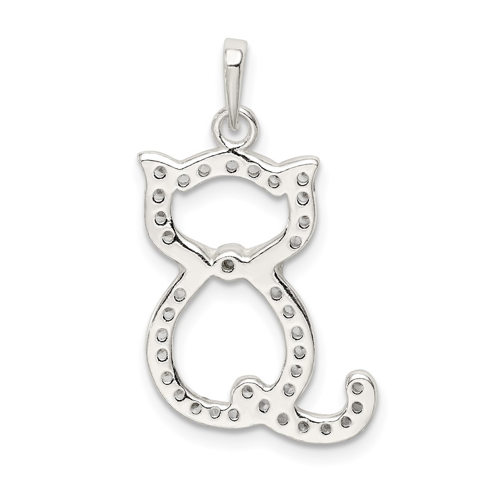 14k White Gold 6mm Heart Blue Topaz and Diamond Cat Chain Slide