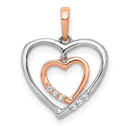 14k White and Rose Gold 1/20 carat Diamond Double Hearts Pendant
