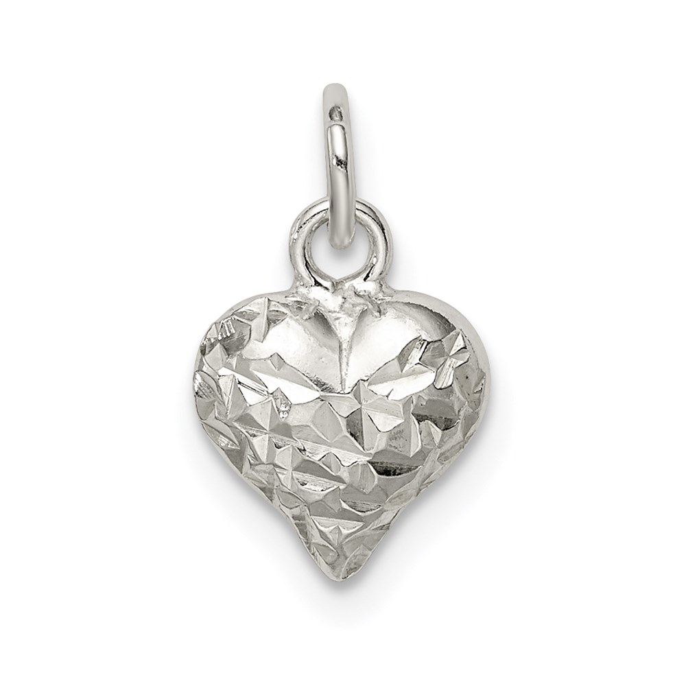 Sterling Silver Polished Diamond-cut Puff Heart Charm