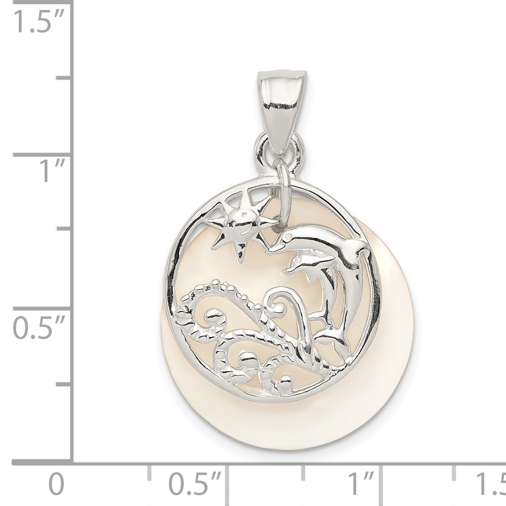 Sterling Silver Polished Dolphin & Waves Mother of Pearl Pendant