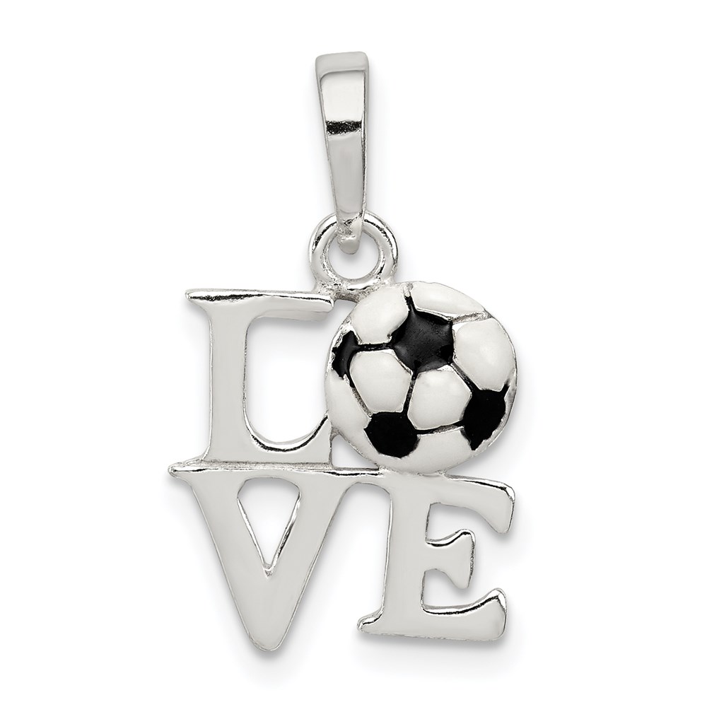 Sterling Silver Polished Enamel Love Soccer Pendant